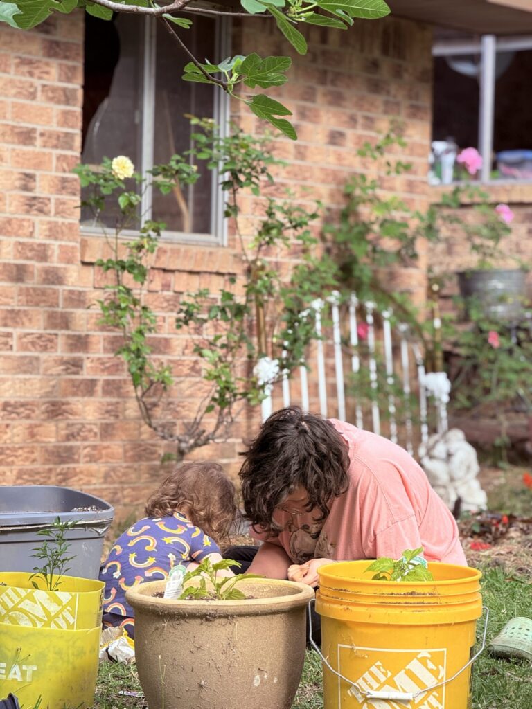 Zoe wanted to get a little more gardening done today and she had more help from Landscaping expert Sloan than I think she knew what to do with.