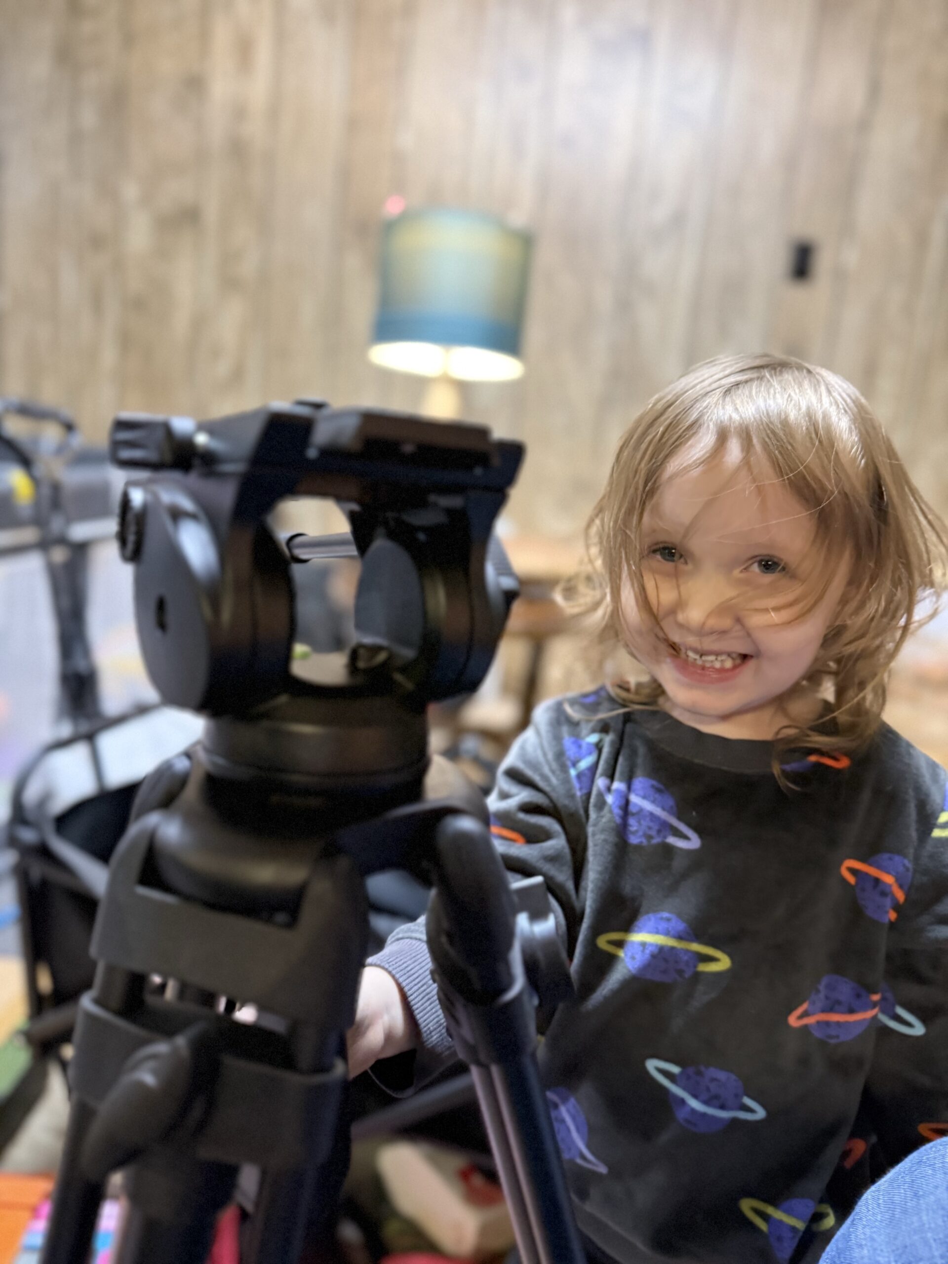 She’s showing me how to set up this new tripod! I would say she’s my helper like my dad used to do with me, but no, she’s definitely my supervisor.